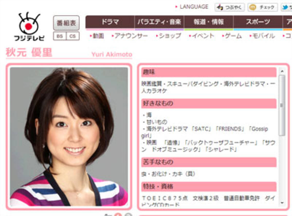 クリスマス婚のフジ 秋元優里アナに早くもささやかれるフリー転身 アナウンス部に居場所なし 12年12月27日 エキサイトニュース